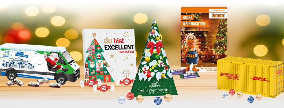 Ob LKW, Container oder Laptop – unsere Adventskalender gibt es in vielen kreativen Formen und Motiven. Gerne beraten wir dich bei der Auswahl.