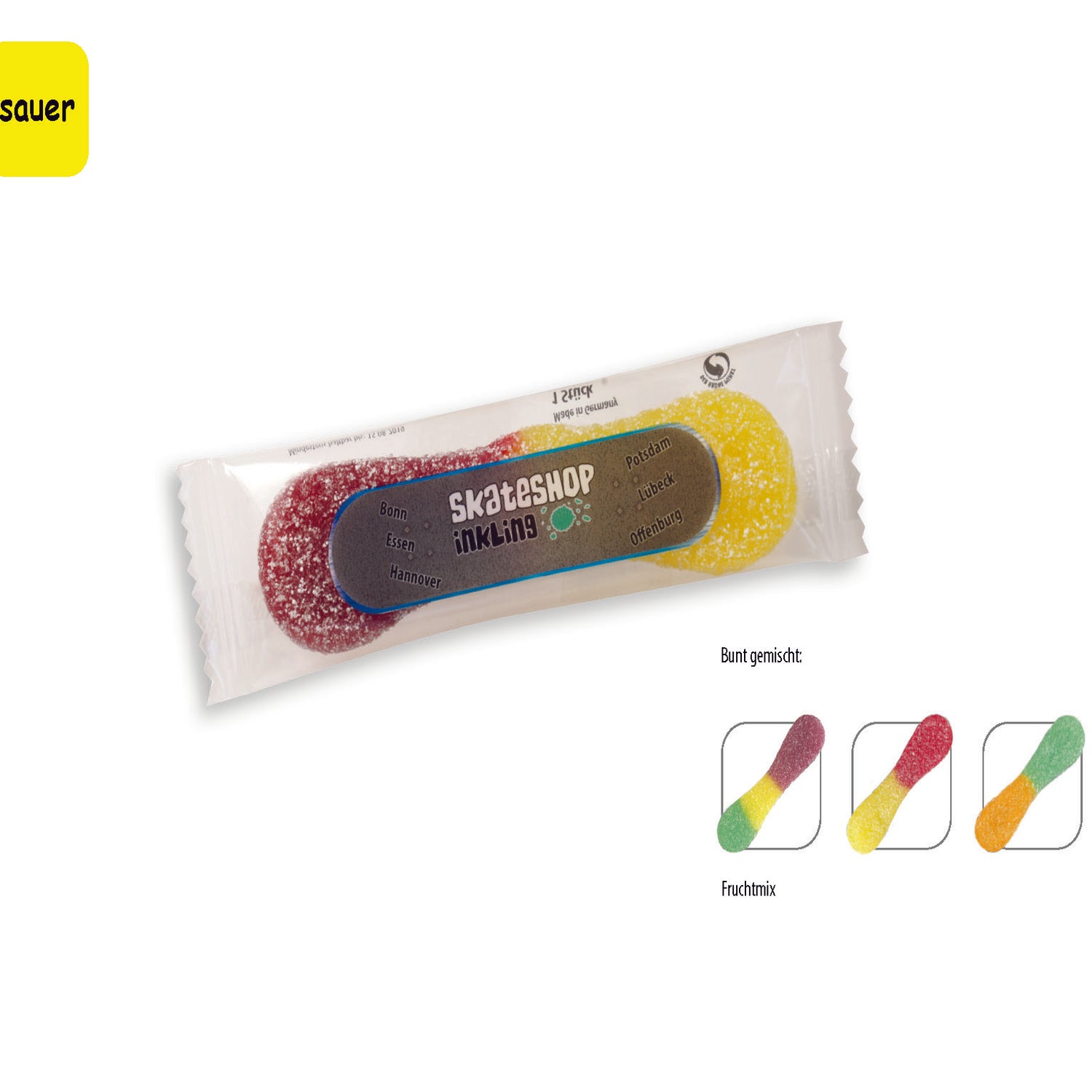 Saure Zungen - weiße Folienverpackung ist auf Lager und wird versandt, sobald es wieder verfügbar ist