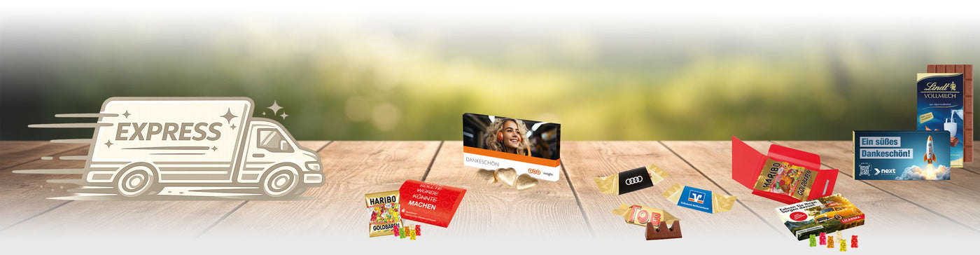 Express Werbeartikel: Schokolade & Gummibärchen mit deinem Logo