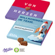 Ob als Kundengeschenk, Mitarbeiterpräsent, Mailing-Beilage oder Aufmerksamkeit zum Valentinstag, Jubiläum oder Jahresende – Milka „Von Herzen“ passt zu vielen Anlässen und wirkt immer persönlich.