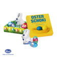 | Inhalt | Vollmilch Schokoladenmischung (ca. 25 g), bestehend aus 2 Stück Schokoladen-Eiern, bunt gemischt und einem Osterhasen von Klett. |