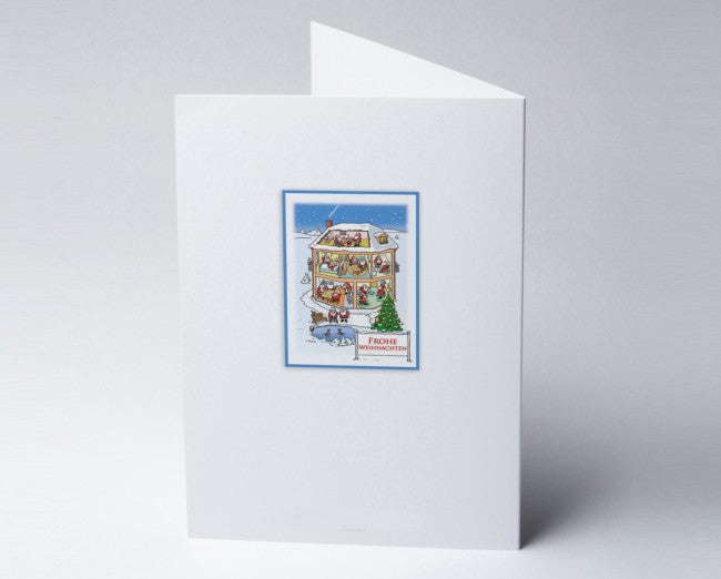 - Firmen Weihnachtskarte mit witzigem Pflege-Motiv und Text „Frohe Weihnachten“