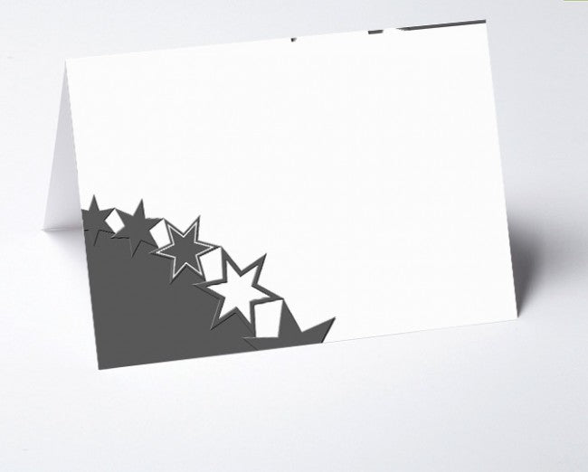 Die stilvolle Weihnachtskarte Sterne weiß ist die perfekte Wahl, um deine Weihnachtskarten für Mitarbeiter modern und wertschätzend zu gestalten. Mit ihrem grafischen Sternen-Design in grau und weiß sowie einem internationalen Weihnachtsgruß wirkt sie zeitlos und elegant.