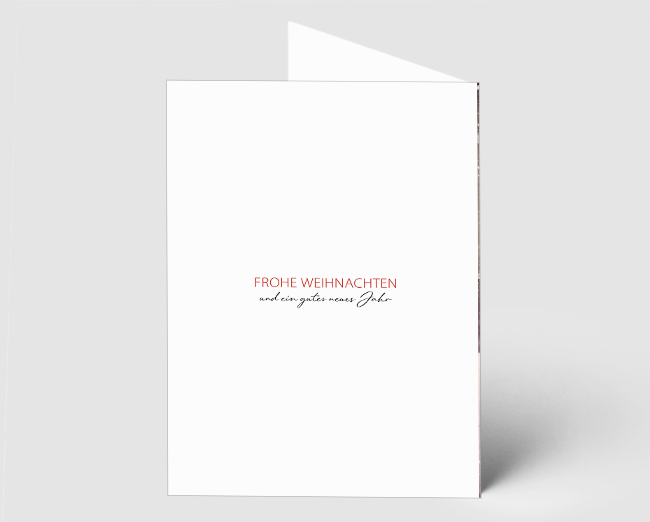 Mit unserem kostenlosen Gestaltungsservice kannst du die Weihnachtskarte individuell anpassen: Platziere dein Logo auf der Vorderseite, ergänze persönliche Texte oder sogar Teamfotos. Dank optionalem Einzelversand-Service verschicken wir die Karten auch direkt an deine Kunden, Partner oder Mitarbeiter – professionell, zuverlässig und bequem.
