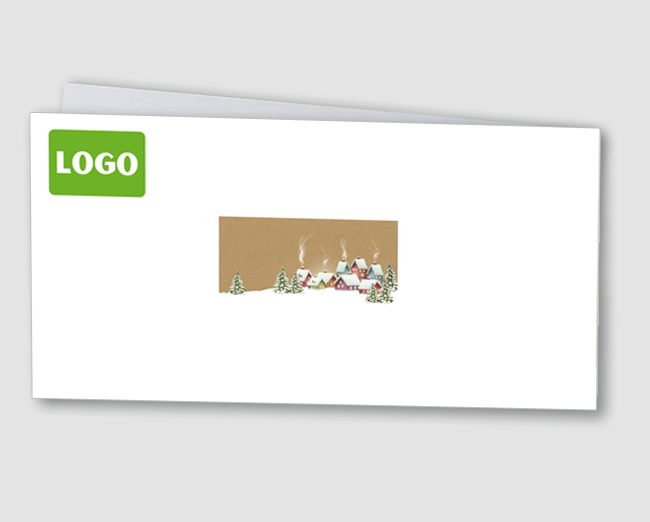 Mit der Weihnachtskarte Winterdörfchen setzt deine Firma auf eine stilvolle und persönliche Art, Weihnachtsgrüße zu übermitteln.